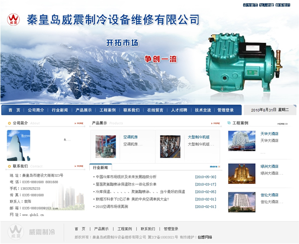 秦皇島威震制冷設(shè)備維修有限公司自創(chuàng)立以來一直堅守“精益求精,誠實守信”的理念和以整合渠道資源的思想不懈努力著。秦皇島威震制冷設(shè)備維修有限公司專業(yè)安裝各種規(guī)格的冷凍、冷藏、氣調(diào)保鮮及速凍設(shè)備。為客戶提供從設(shè)計、生產(chǎn)、施工及售后的一條龍服務(wù),并且承接各種非標(biāo)準(zhǔn)制冷系統(tǒng)的設(shè)計與安裝。
