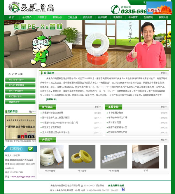 秦皇島市奧星新型管業(yè)有限公司,成立于2002年6月,座落于美麗的海濱城市秦皇島,專(zhuān)業(yè)從事地板采暖專(zhuān)用管材生產(chǎn)、銷(xiāo)售及地板采暖設(shè)計(jì),施工的企業(yè)。是中國(guó)地面供暖委員會(huì)常務(wù)委員單位,“奧星管業(yè)”被認(rèn)定為秦皇島市知名商標(biāo)企業(yè),被推選為中國(guó)著名品牌,全國(guó)質(zhì)量、服務(wù)、信譽(yù)AAA品牌企業(yè)。我公司生產(chǎn)的PE—X、PE—RT、PP—R管材管件系列產(chǎn)品被列入中國(guó)工程建設(shè)重點(diǎn)推廣應(yīng)用產(chǎn)品。
