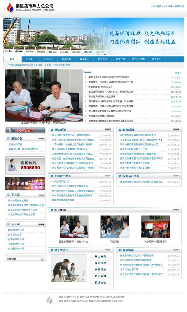 秦皇島市熱力總公司成立于1987年9月,隸屬于秦皇島市城市管理局,公司注冊資金1億元,企業(yè)總資產(chǎn)達到10億元,年收入3億元,職工千余人,其中專業(yè)技術(shù)人員200余人,是以供熱生產(chǎn)為主,供熱工程、市政公用工程施工等為輔的國有獨資供熱企業(yè)。